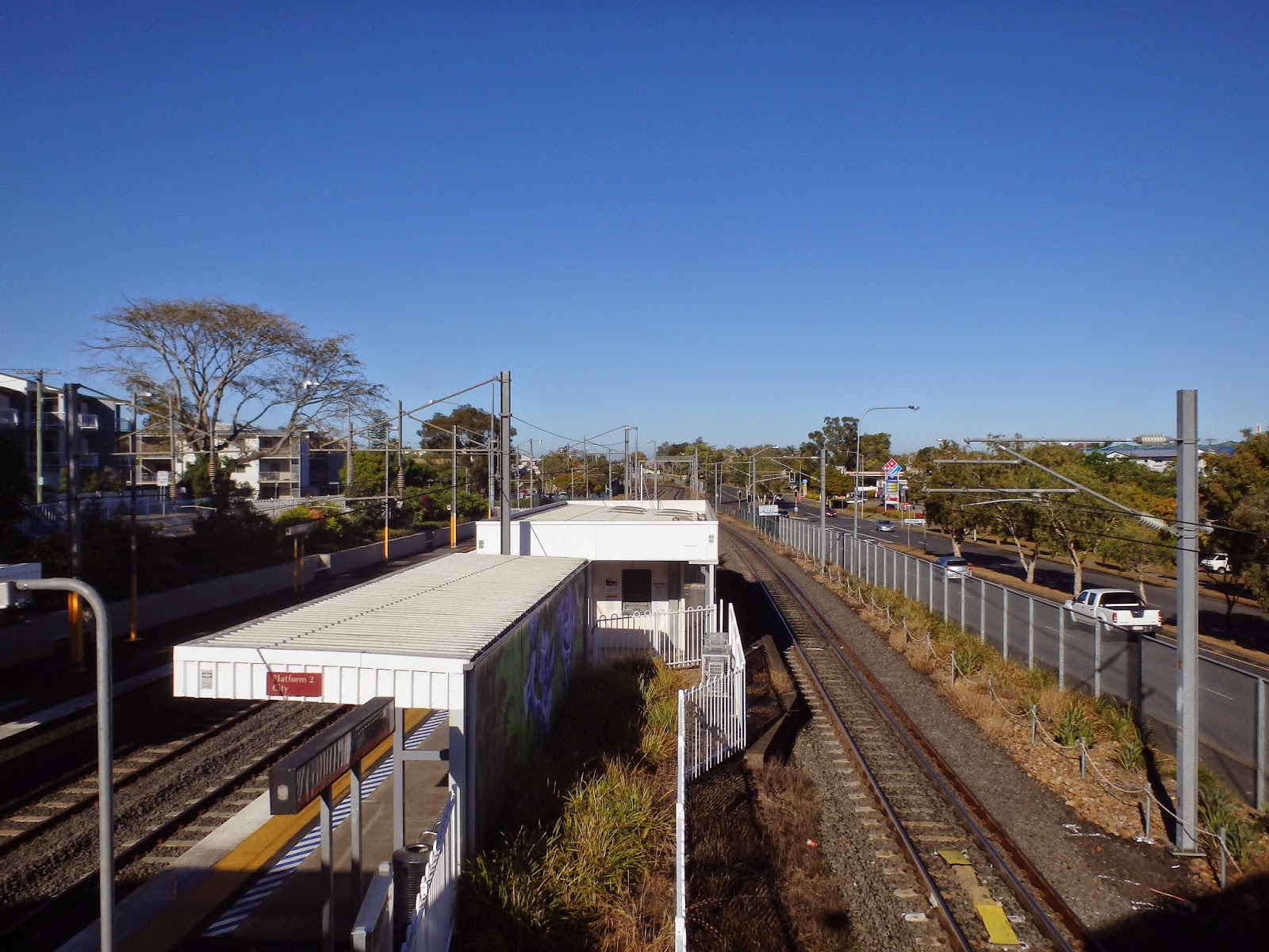 the airport train has left the station. it will continue north running express through fairfield and dutton park, before stopping all stations from park road to bowen hills. from bowen hills, the airport train then runs express to eagle junction (skipping poor albion and wooloowin) and then on to the international and domestic airport stations. i have seen these airport stations when i have been to airport with family and friends, but i still havent collected them yet. plenty of time still left for that though!
